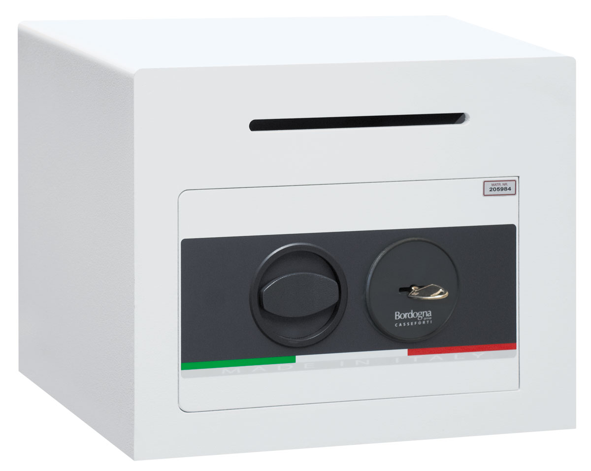 Studiata per piccole attività commerciali (tabaccherie, distributori carburante, negozi, ecc) con necessità di proteggere notevoli quantità di denaro lasciandole solo una minima parte esposta al rischio di rapina